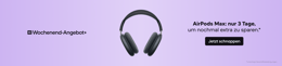 Angebot gültig vom 10. bis 12. April 2026 (23:59 CET). Die Aktionscodes sind länderspezifisch und verfügbar solange der Vorrat reicht, nach dem Prinzip „Wer zuerst kommt, mahlt zuerst“, für die unten aufgeführten Produkte. Die Rabatte werden automatisch beim Checkout angewendet, solange der Vorrat reicht. Ein Code pro Kunde und Bestellung. Nicht mit anderen laufenden Angeboten kombinierbar. Details: AirPods Max 2024: 30€ Rabatt – 40 Codes
