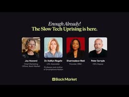 Durr verwies auch darauf, dass der Anteil erneuerter Smartphones in der EU in den letzten drei Jahren um 33 % gestiegen ist – im Vergleich zu nur 6 % Wachstum in der globalen Elektronikbranche. Für sie ein deutliches Signal: Konsument:innen haben Lust, unabhängiger von Big Tech zu werden. Das größte Hindernis bleibt die Sorge um den Akku. Doch Back Market startet bald ein spezielles Austausch-Programm für Akkus, um diese Bedenken auszuräumen: „Immer mehr Menschen merken, dass es ihnen reicht, wenn sie sich darauf verlassen können, dass Technik einfach funktioniert. Sie wollen Geräte, die wirklich lange halten und die man reparieren kann.“