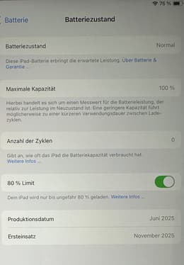 Ich bin wirklich unfassbar glücklich darüber, wie gut das iPad funktioniert. Es ist wie neu. Keine Mängel, volle Akku-Kapazität und auch sonst wirklich keine Mängel. Ich kann’s wirklich nur weiterempfehlen. Vielen Dank für dieses tolle Produkt!! :)